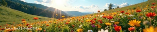 Vibrant wildflowers carpet a sun-drenched hillside , blossom, beauty, floral