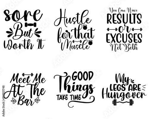 Vibrant Workout Calligraphy, Typographic Emblems Set Vector Illustration for Holiday Cards, Bookmark, Advertising