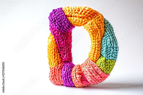 Vibrant Yarn Letter D: A Colorful Knitted Alphabet Letter for Craft Projects, DIY, Kids' Designs, Blogs, Websites, and Social Media. Perfect for handmade, textile, and whimsical themes. Add a touch of