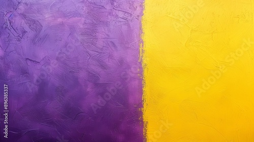 Vibrant yellow and purple paint mixing to form a colorful abstract background with space for text. Textured surface adds a modern touch. Perfect for creativity!
