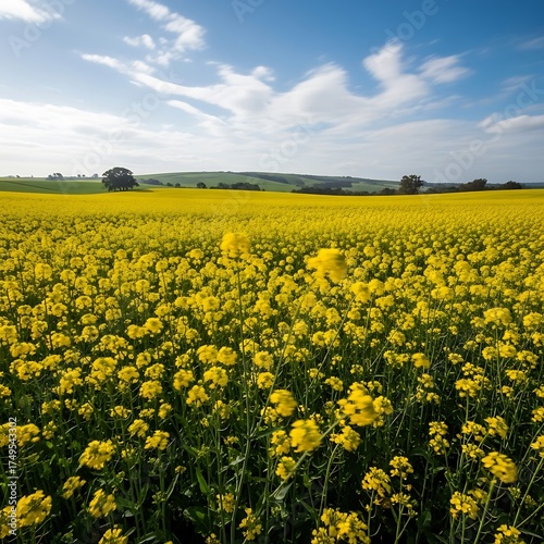 rapeseed, field, yellow, flower, sky, blue, cloud, landscape, rural, countryside, nature, spring, summer, agriculture, crop, farm, blooming, vibrant, scenic, horizon, outdoors, daylight, sunshine, growth, cultivation, environment, season, plant, canola, oilseed, farming, country, open, space, vista, view, idylli, tranquil, serene, peaceful, natural, beauty, fresh, air, clear, bright, sunny, day, gold