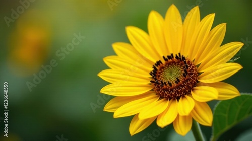 Vibrant Yellow Sunflower Close-Up with Soft Bokeh Background, Showing Intricate Details of Petals and Central Disc