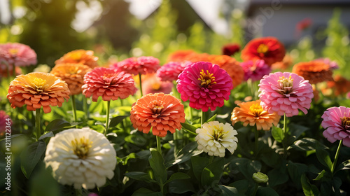 zinnia, flower, blooming, garden, summer, nature, vibrant, colourful, orange, pink, white, closeup, floral, beauty, landscaping, gardening, plant, flower petals, summer flowers, colorful flowers, seasonal, spring flower, flowerbed, display, decoration, bouquet, fresh, lush, closeup, natural, full bloom, foliage, floral arrangement, blossom, annual, cultivar, variety, high-coloured, bright, freshness