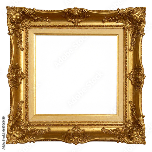 Victorian-Inspired Gold Frame with Elaborate Corners, Angled View, Transparent Background