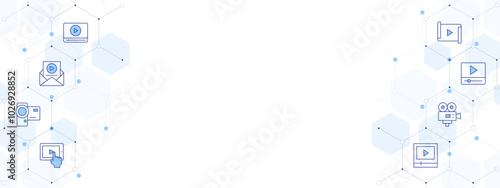 Video Banner Vector Illustration with Two-sided Icon Style. Line Duotone icon. Containing email, video camera, video lesson, video player, video production, video, tablet