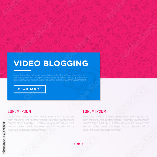 Video blogging concept with thin line icons: vlog, ASMR, mukbang, unboxing, DIY, stream game, review, collaboration, podcast, tips and tricks. Vector illustration, print media template.