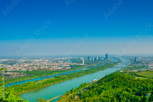 Vienna landscape with Danube river from Kahlenberg mountain
