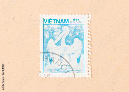 VIETNAM - CIRCA 1984: A stamp printed in Vietnam shows a pelican, circa 1984
