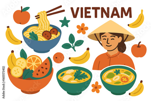 vietnam, culture, food, icon, set, flat, vector, portrait, pho, soup, cham, tower, rice, field, civet, cat, traditional, nature, asian, travel, ethnicity, heritage, ethnic, design, people, symbol, landmark, minimalist, meal, vietnamese, agriculture, illustration, architecture, dish, animal, local, trendy, graphic, tour tourism