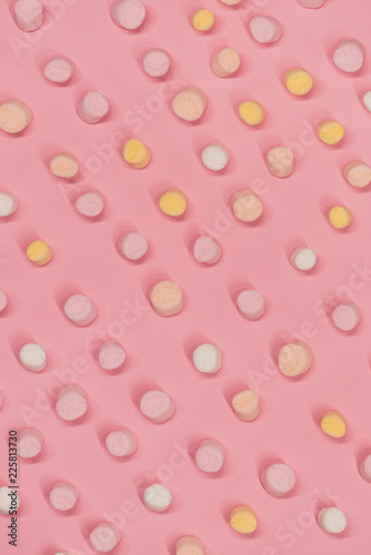 candy, sweet, dessert, flat, lay, up high, top, view, overhead, background, beautiful, colourful, line, pattern, texture, arrangement, closeup, culinary, food, macro, nobody, object, product, diagonally, pink, concept, creative, confectionery, delicious, art