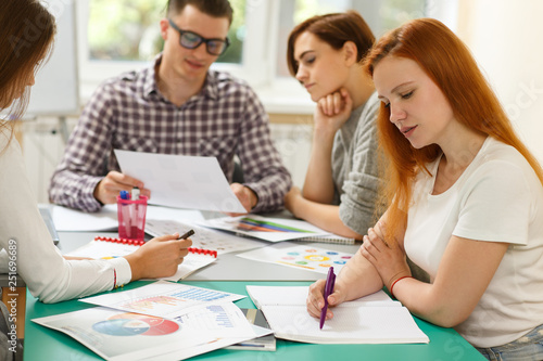 lesson, girl, learning, student, working, study, communication, mate, group, class, adult, young, smart, determined, meeting, talking, sitting, training, explaining, preparing, discussing, sharing, writing, planning, statistic, note, table, classroom, college, university, school, course, education, business, seminar, presentation, teamwork, information, problem, cognition, speech, event, attention, conference, friendship, development, management, indoor, horizontal