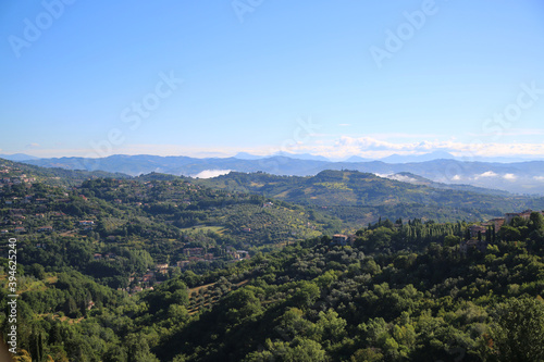 light, italy, sky, nature, region, umbria, old, morning, plant, vegetation, perugia, roof, landscape, early morning, mist, panorama, church, view, tree, early, historic