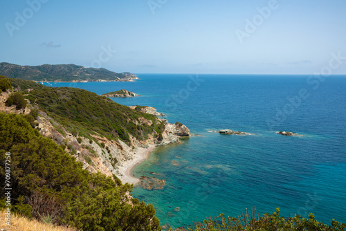 sea, beach, coast, water, landscape, island, ocean, coastline, sky, nature, bay, travel, summer, greece, cliff, rock, sand, vacation, rock, scenic, tour tourism, view, mediterranean, holiday, seascape