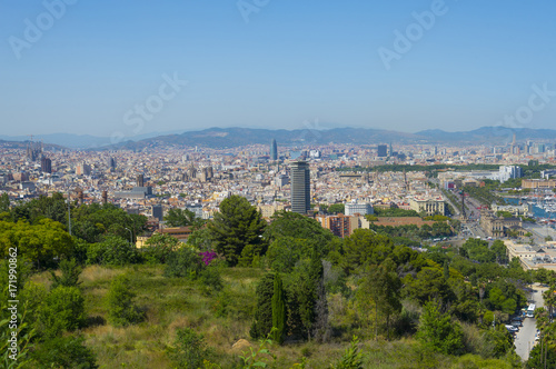 city, panoramic, urban, spain, barcelona, city landscape, catalonia, europa, place, famous, scene, view, architecture, sea, skyline, building, travel, tour tourism, aerial, tower, life, skyscraper, high, mediterranean, angle, looking, sky, house, town, built, structure, church, country, outdoors, culture, roof, blue, at, space, horizon, water, street, district, horizontal, spanish, cathedral, park, people, summer