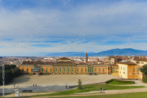 View of Florence, Tuscany, Italy. In the foreground the Boboli Gardens and Pitti Palace ( Italian: Giardino dei Boboli e Palazzo Pitti )