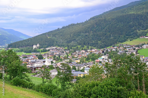austria, europa, alps, mountain, nature, landscape, sky, blue, day, cloud, city, village, building, house, summer