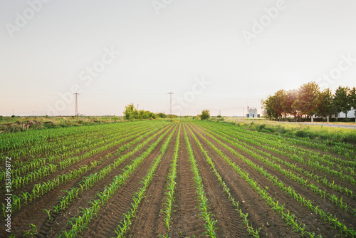 green, nature, field, summer, crop, agriculture, season, corn, farming, cornfield, rural, plant, agricultural, industry, farm, young, harvest, organic, leaf, countryside, grow, grain, environment, growing, fresh, row, day, vegetable, flora, growth, cultivation, food, plantation, culture, peasant, profession, wheat, photosynthesis, health, land, ecology, production, rippling, fruitful, ground, tender, humus, earth, outside, line
