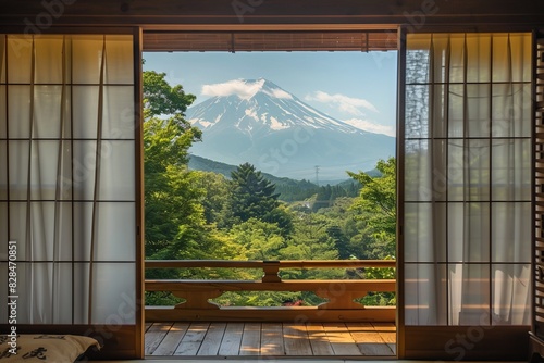 View of mount Fuji In Japan from a Japanese hotel window