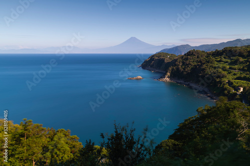 View of Mount Fuji on a peaceful morning from Lover's cape, Izu Peninsula, Japan