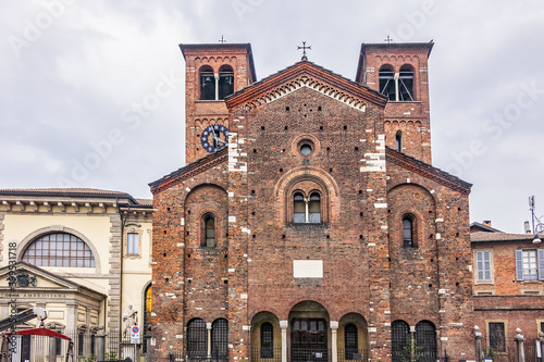 View of The Church of St. Sepulchre (Chiesa di San Sepolcro) - sacred building in Milan very rich in history. The first version of the church was built in 1030. Milan, Italy.