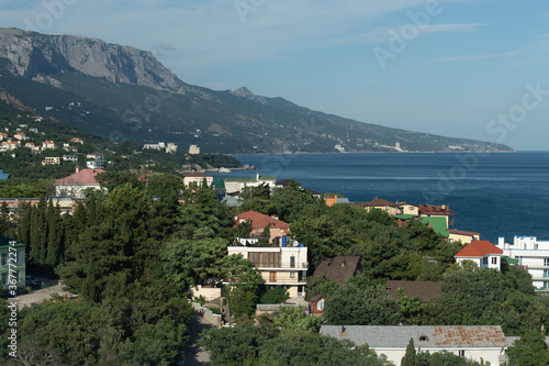 crimea, home, house, hill, shore, nature, green, summer, day, sunny, beautiful, height, top, nobody, summer, roof, landscape, resort, health, view, village, street, up high, tree, forest, black, sea, mountain, water, coast