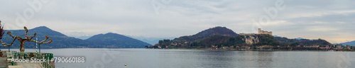 View of the Medieval Rocca Borromea di Angera from Arona, Lake Maggiore, Italy