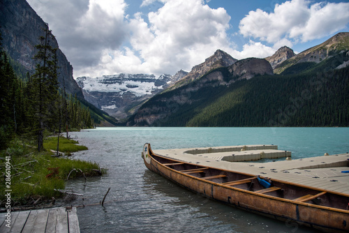 lake, mountain, water, banff, canoe, mountain, canada, landscape, nature, sky, blue, cloud, summer, forest, alps, sea, snow, travel, scenic, cloud, green, panorama, norge, beautiful, boat