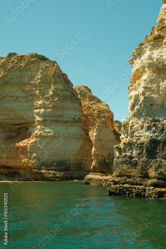 View of the ocean cliffs on the coast of Lagos, Portugal