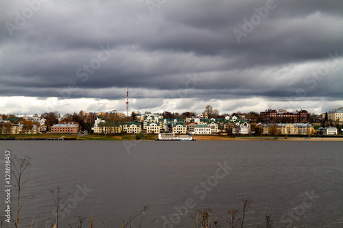 View of the pier of the ancient city of Kostroma. Gold ring of Russia.