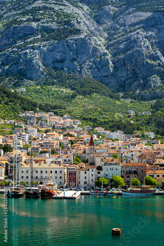 View of the resort town of Makarska on a summer day, in Makarska Riviera, Croatia