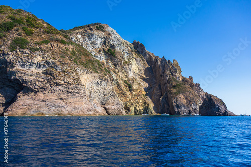 View of the rocky coast in Palmarola island (Ponza, Latina, Italy).