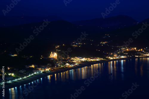 greece, ozean, sea, summer, holiday, travel, traveling, warm, hot, blue, mediterranean sea, mediterranean, island, relaxing, relax, corfu, beach, swim, swimming, water, view, nature, landscape, rock, tour tourism, water, coast, stone, night, dark, black, silhouette, panorama, town, seaboard, promenade, boardwalk, light, lamp, sky, horizon