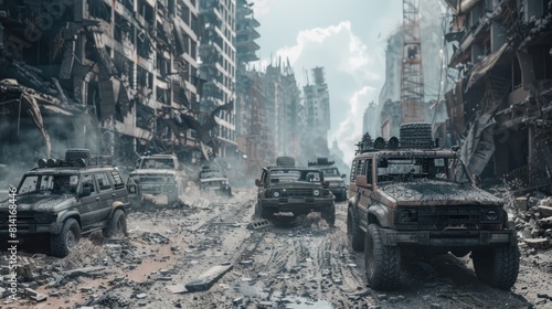 Views of cities and cars destroyed by war and disasters in the future wallpaper AI generated image