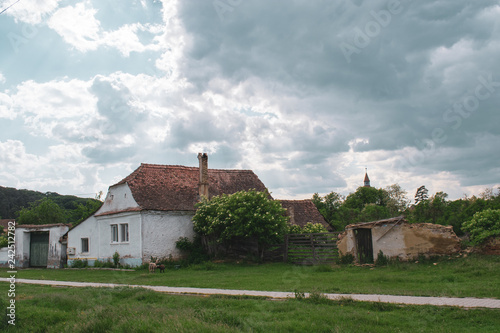 house, home, sky, architecture, landscape, grass, building, green, old, castle, country, church, bungalow, village, blue, summer, rural, travel, field, nature, countryside, tree, cloud, tour tourism, estate, romania