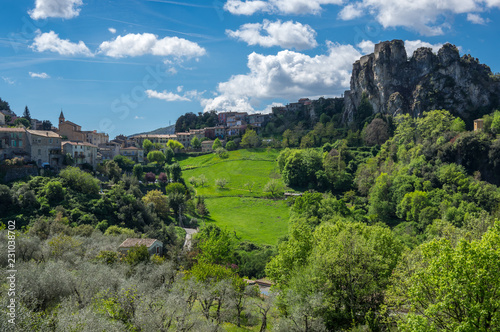 regional, park, provence, france, alps, alpes, french, tour tourism, mountain, nature, natural, landscape, scene, scenery, massif, traveling, travel, view, european, europa, slope, cliff, tree, panorama, panoramic, green, blue, sky, cloud, sunny, daytime, village, town, house, building, architecture, old