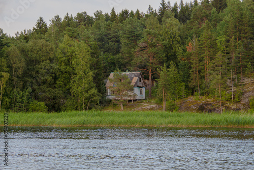 house, forest, lake, water, nature, landscape, tree, tree, green, sky, building, architecture, travel, grass, rural, idylli, countryside, beautiful, water surface, background, shine, fresh, sparkle, fresh air, clean, open air, weather, season, texture, surface, abstract, timberland, outdoors, natural, mountain, rock, tour tourism, roof, wall, window, shelter, structure, edge, path, dwelling, hut, shore