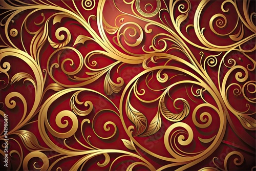 Vinous Glamour: Modern, sophisticated, shades of deep red and gold, abstract swirls