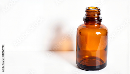 Vintage apothecary bottle glowing on white background, minimalist charm