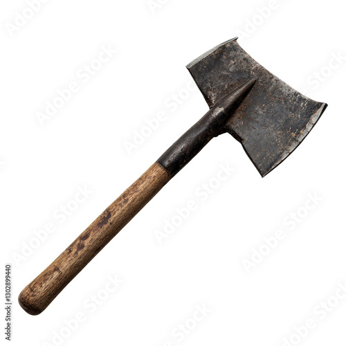 Vintage Axe with Weathered Wooden Handle for Campfire Cooking or Outdoor Activities