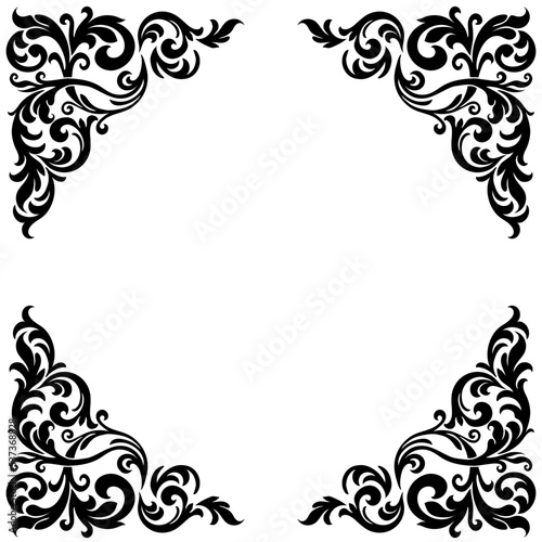 Vintage baroque frame scroll ornament engraving border floral retro pattern antique style acanthus foliage swirl decorative design element filigree calligraphy.