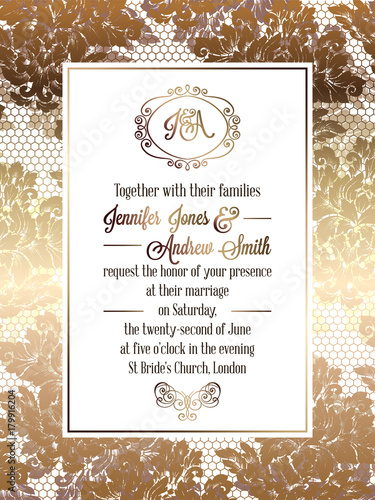 wedding, gold, floral, elegant, vintage, border, greeting, background, decorative, celebration, damask, decor, decoration, invitation, ornament, template, anniversary, frame, classic, rococo, victorian, card, pattern, graphic, illustration, ornate, luxury, ornamental, royals, invite, event, congratulation, bridal, marriage, traditional, announcement, celebrate, postcard, baroque, menu, label, ancient, antique, certificate, divider, foliage, rich, intricate, beige, formal