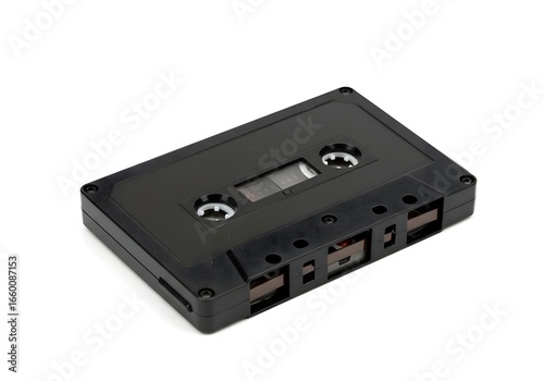 Vintage Black Cassette Tape with Transparent Window – Retro Audio Media Isolated on White