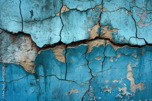 Vintage Blue Grunge Wall Texture and Background with Horizon. Abstract Weathered Wall with Fissures and Texture.