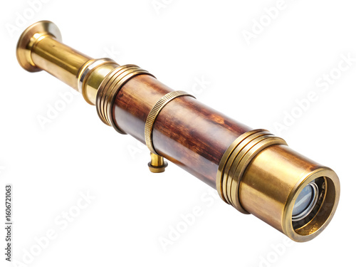color image, no people, photo, exploration, horizontal, brass, cut-out, obsolete, old-fashioned, antique, studio shot, telescope, old, single object, white background, clipping path, curtain, searching, discovery, forecasting, indoor, sailing, watching, copper, vertical, culture, dark, equipment, hand, history, journey, metal, preparation, south korea, still life, adventure, ancient, brown, closeup, copy space, sea, table