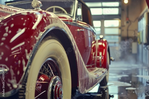 vintage, car, detailing, classic, laundered, preservation, restoration, red, soap, suds, wheel, body, cleaning, meticulous, vehicle, condition, pristine, automotive, retro, elegant, garage, maintenance, spotless, shine, luxurious, antique, showroom, historical, old-timer, hygiene, gleaming, polishing, transportation, heritage, upkeep, bubbly, glossy, water, traditional, sudsy