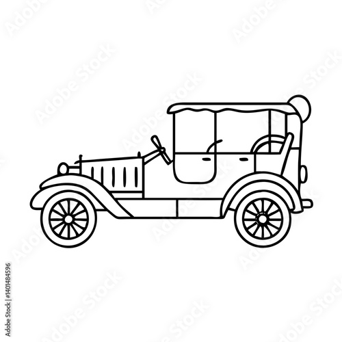 vintage car, icon, illustration, isolated, line, line art, minimalist, modern, object, outline, signs, simple, stroke, symbol, thin, vector, web, web icon, black, black-and-white, decoration, design, flat