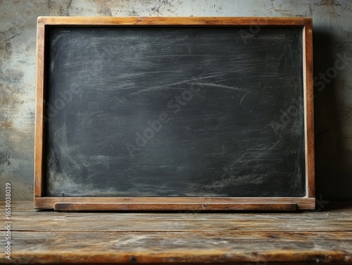 Vintage Chalkboard Frame on Wooden Surface with Rustic Background