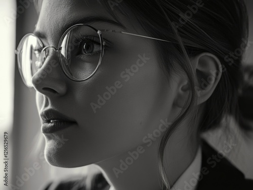 fashion, vintage, round, goggles, close, up, female, chic, classic, sophisticated, monochromatic, black, white, portrait, style, outfit, accessory, retro, trendy, cool, hipster, modern, professional, beauty, feminine, contemporary