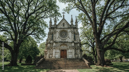 Vintage church edifice located within a natural landscape, representing Christianity and cultural significance