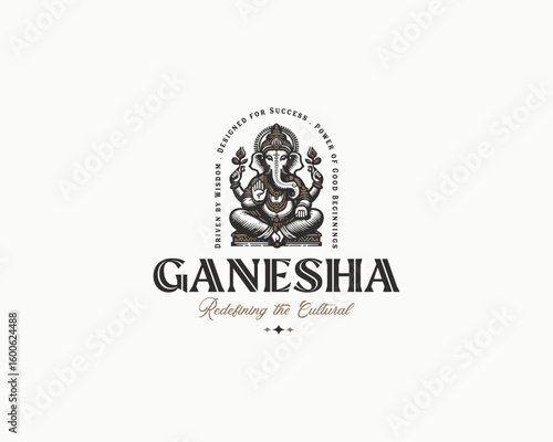 Vintage classic Ganesh brand Ganesha or Vinayaka Chavithi or Vinayagar Chaturthi logo